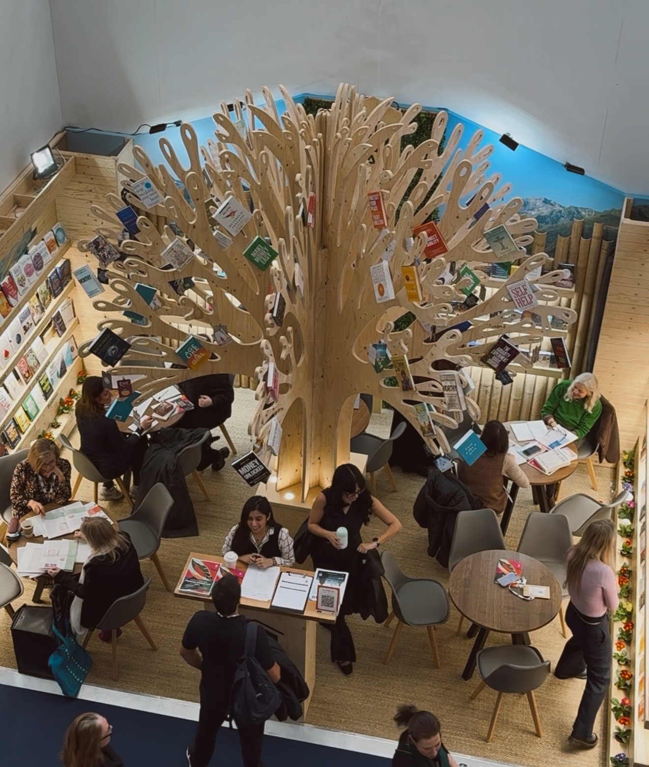 Did the event meet my expectations? Absolutely! Although I only went for one day, it was jam-packed and I enjoyed every minute – though, I’m glad I listened to everyone’s top tip to wear comfy shoes. There weren’t many places to sit and take in the event or unwind between talks, which is something I hope will be improved in the future. Walking among all the stands, I was excited to see books I’ve read and huge images on posters of some of my favourite authors – it was a book lover’s dream. I couldn’t stop admiring the displays, like a wooden tree with books hanging from its branches, a huge penguin bookcase (at, of course, Penguin Random House’s stand), and a wall full of Wordsworth’s gorgeous classic editions. There were stands across all genres, countries and publishers – each unique in their offering, but all with a shared passion of books.